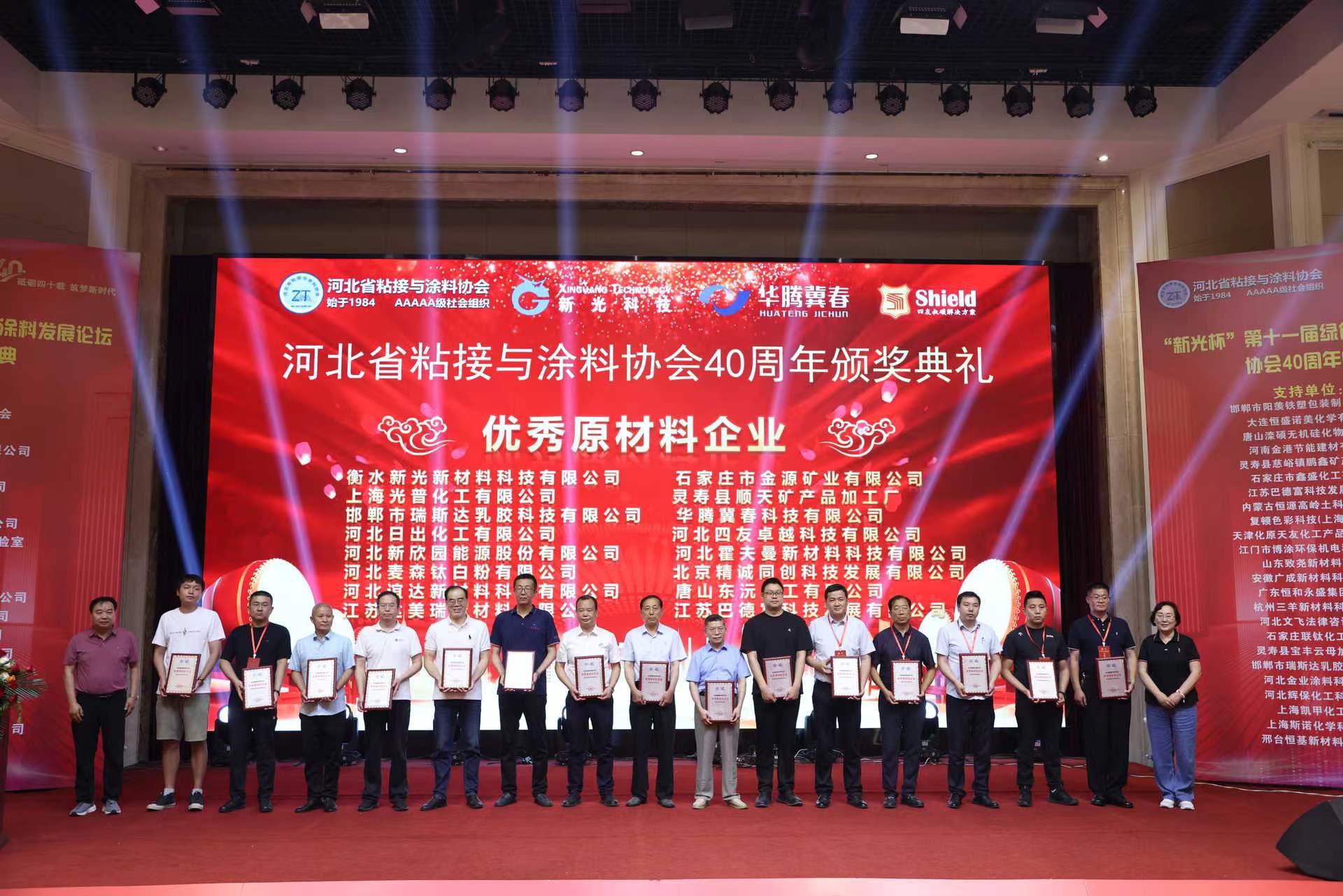 6月16日,河北省粘接與涂料協(xié)會“新光杯”第十一屆綠色涂料發(fā)展論壇暨協(xié)會40周年慶典活動在石家莊圓滿召開,我公司作為協(xié)會會長單位和冠名單位參加此次大會。本次會議有行業(yè)知名原材料企業(yè)、涂料企業(yè)、服務(wù)企業(yè)、專家學(xué)者等共計400余人。